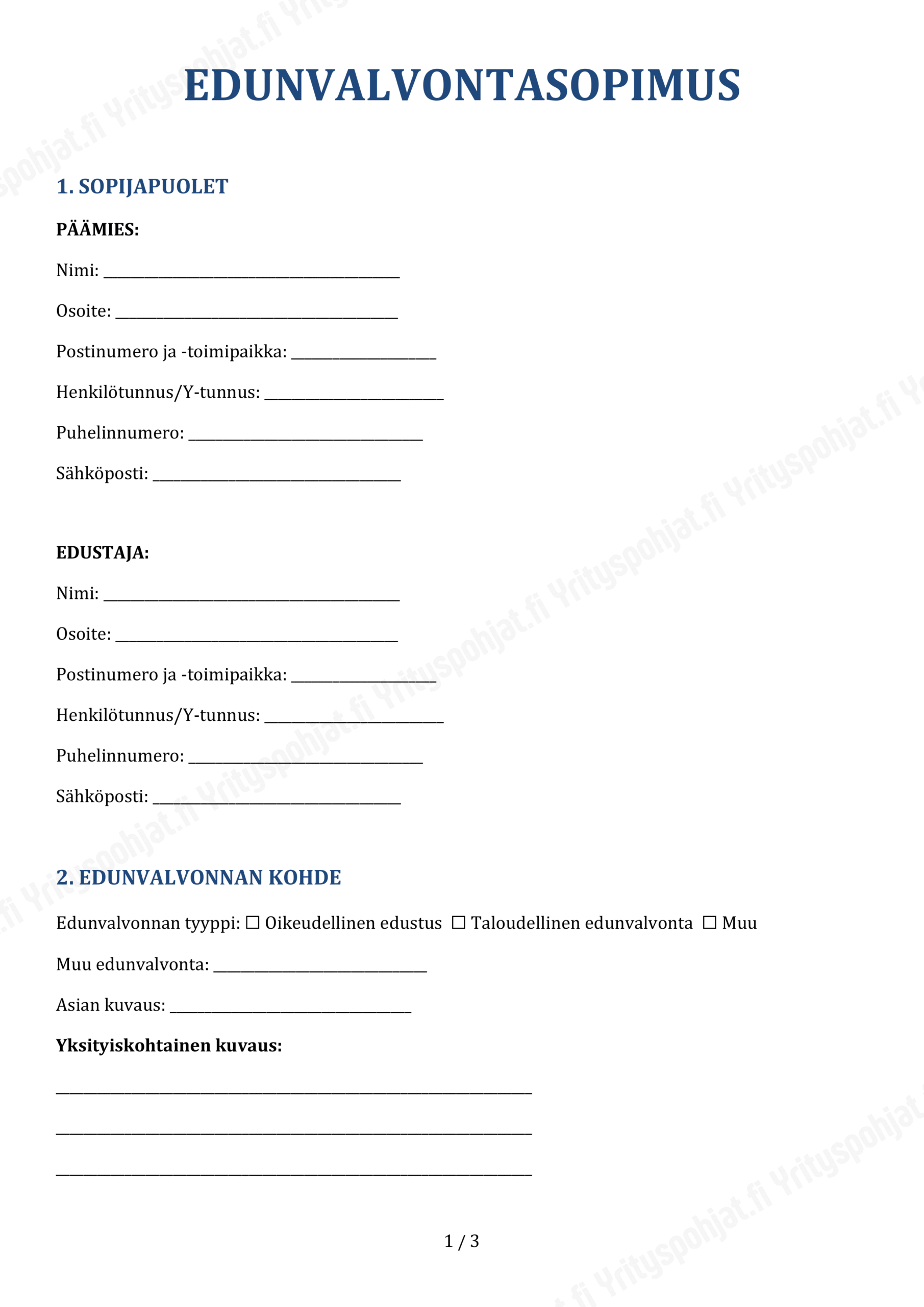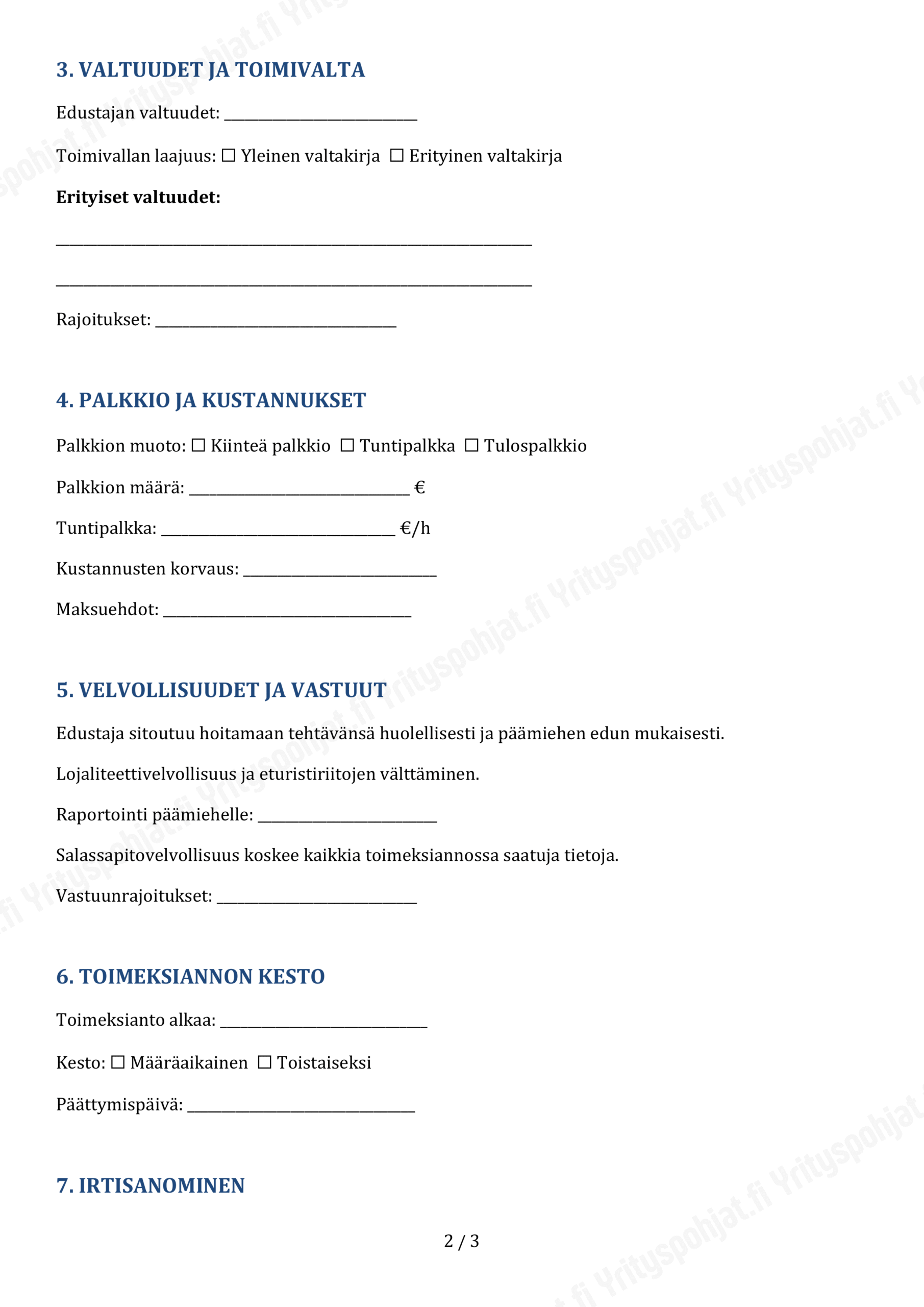 - Päämiehen ja edustajan täydelliset yhteystiedot