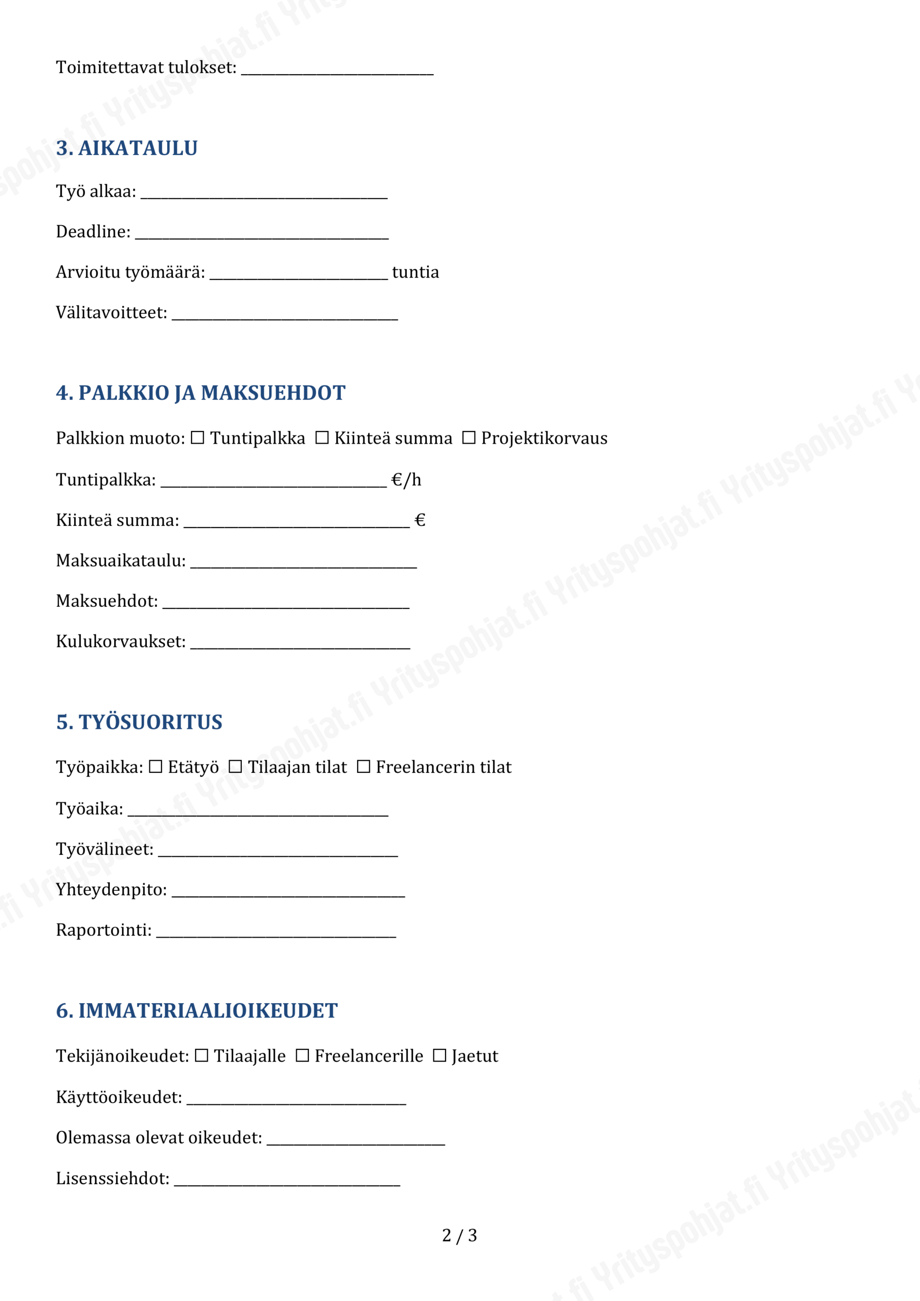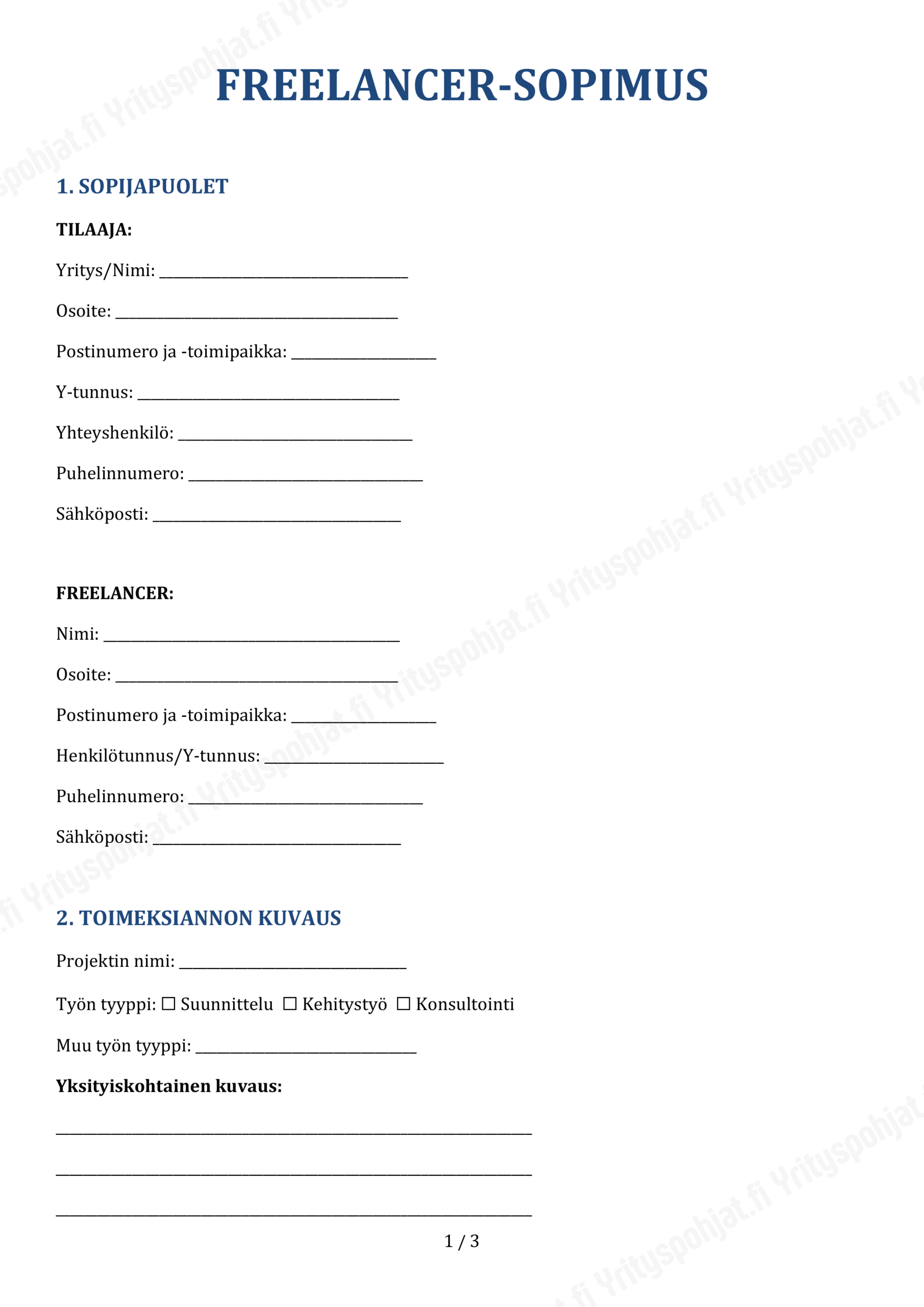 - Tilaajan ja freelancerin täydelliset yhteystiedot