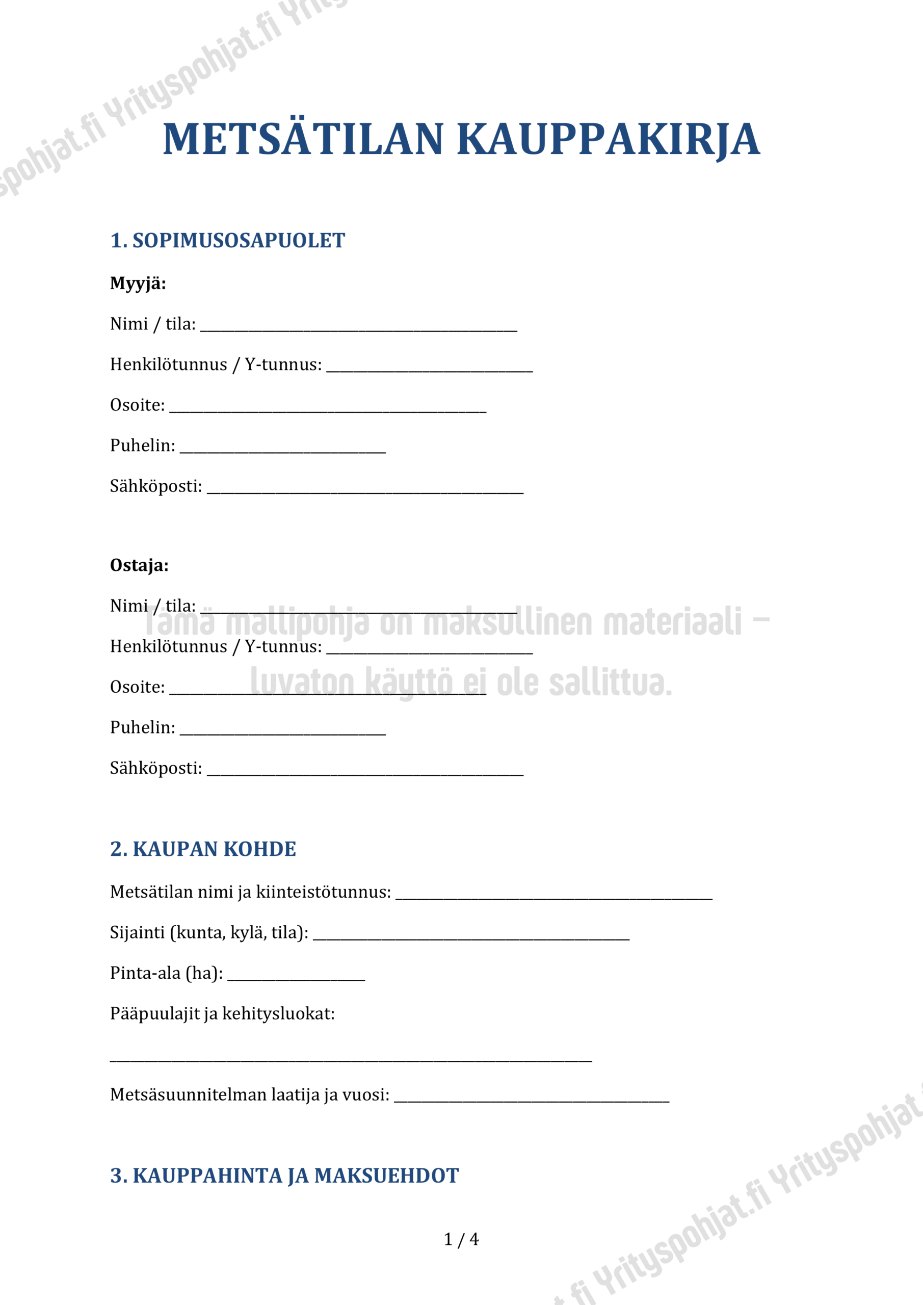 Metsätilakauppa - Metsän myynnin sopimuspohjaMetsätilakauppa – Metsän myynnin sopimuspohja