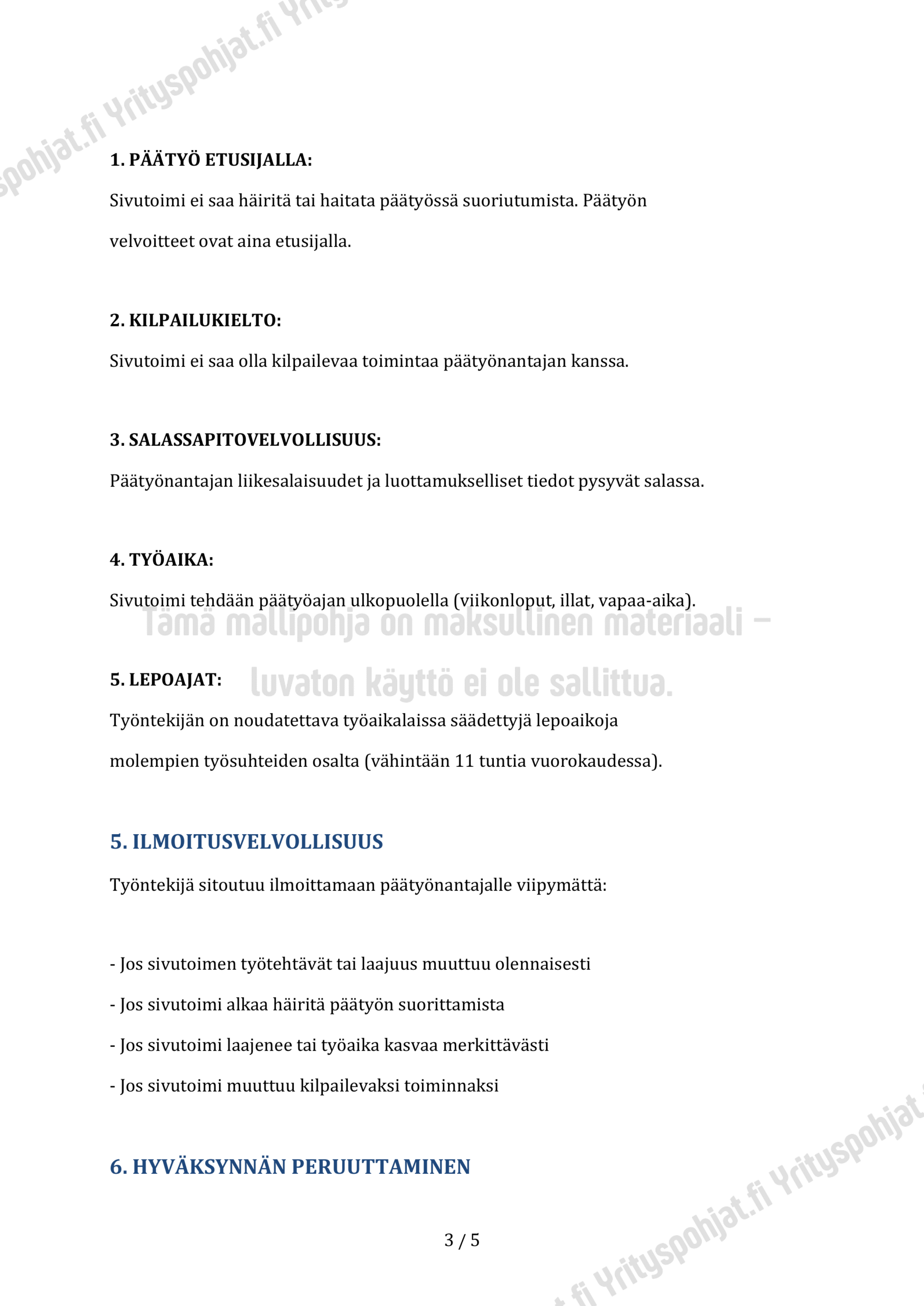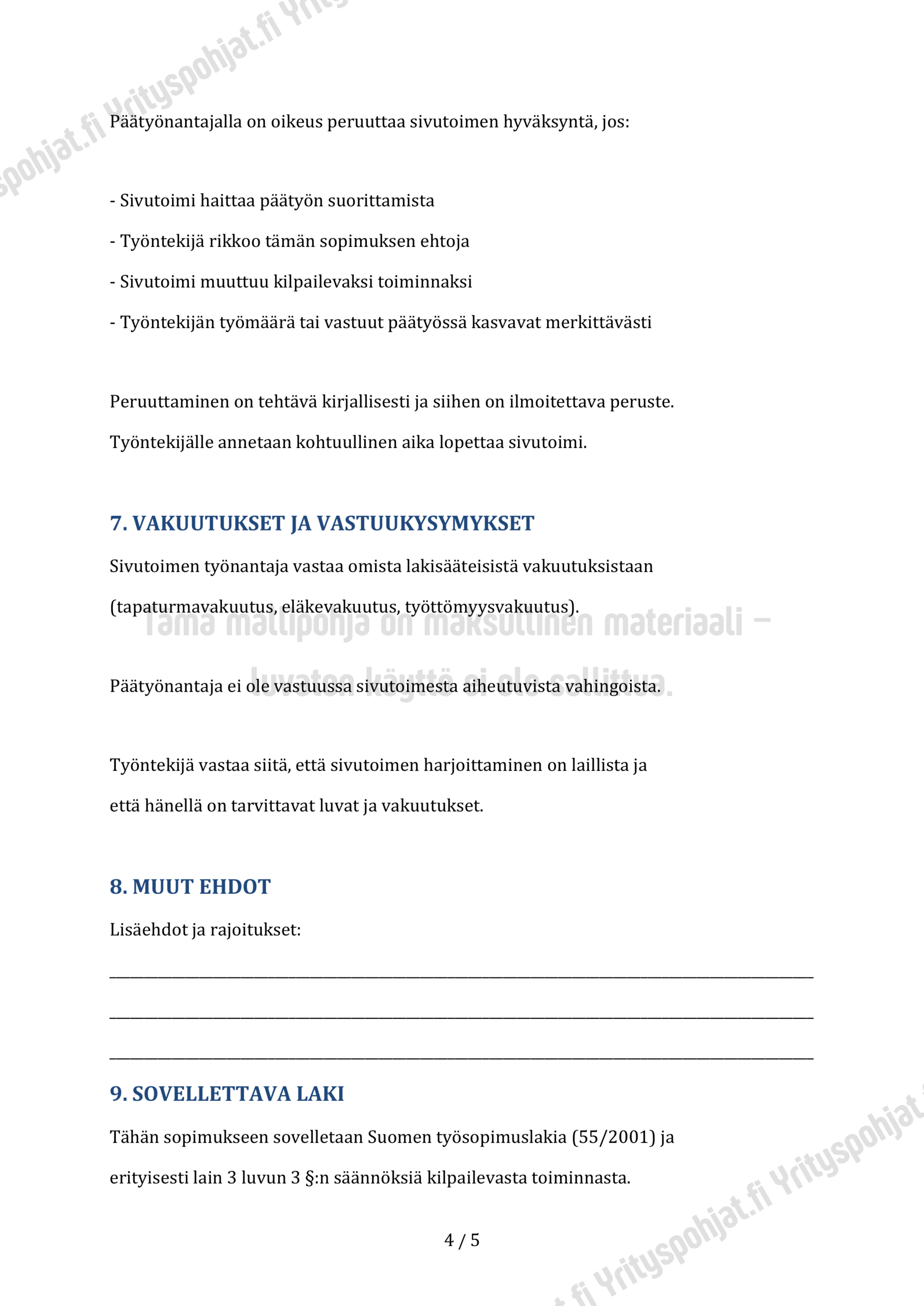 - Tila lisäehdoille, kuten työvälineiden käytölle tai koulutukselle.