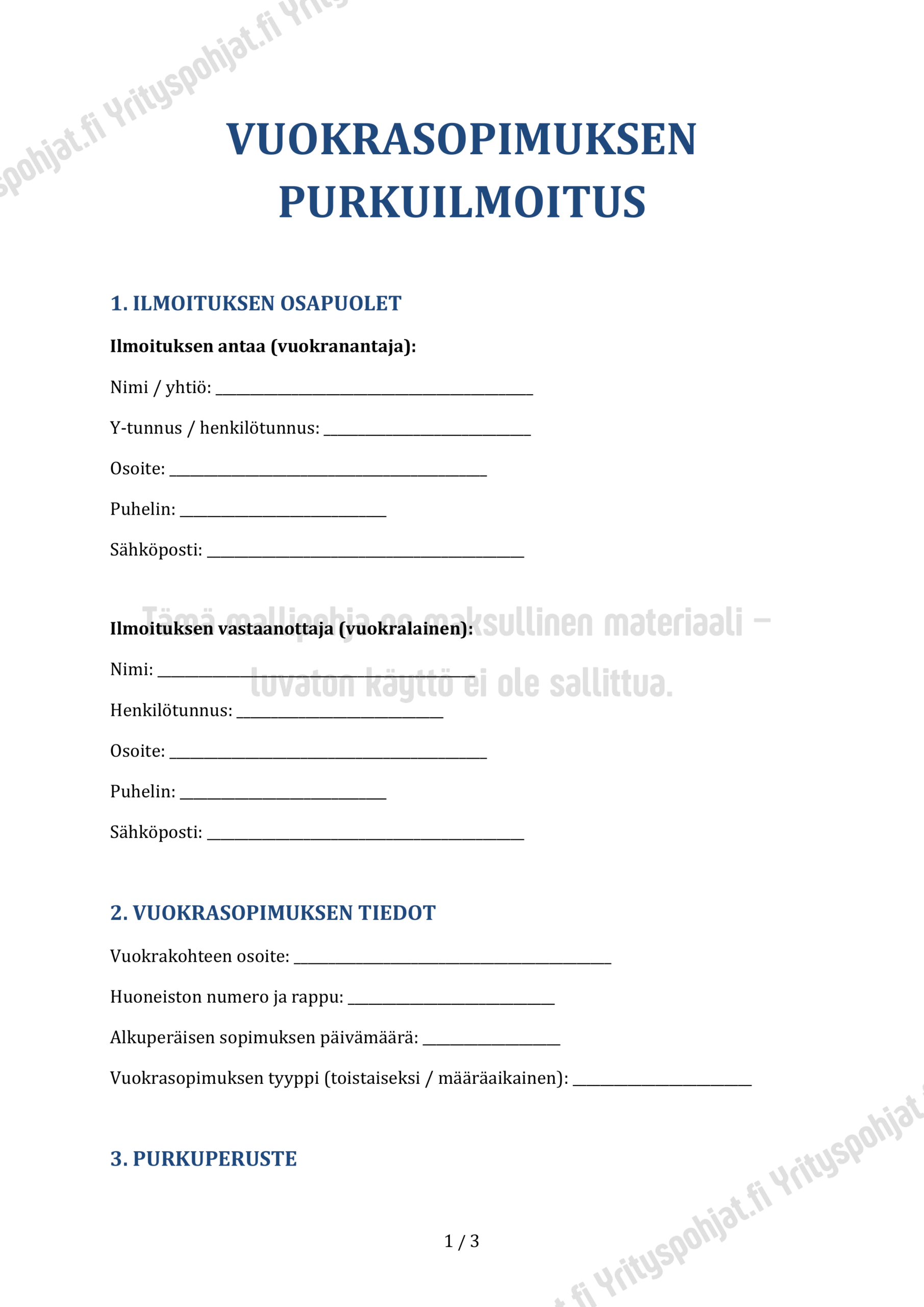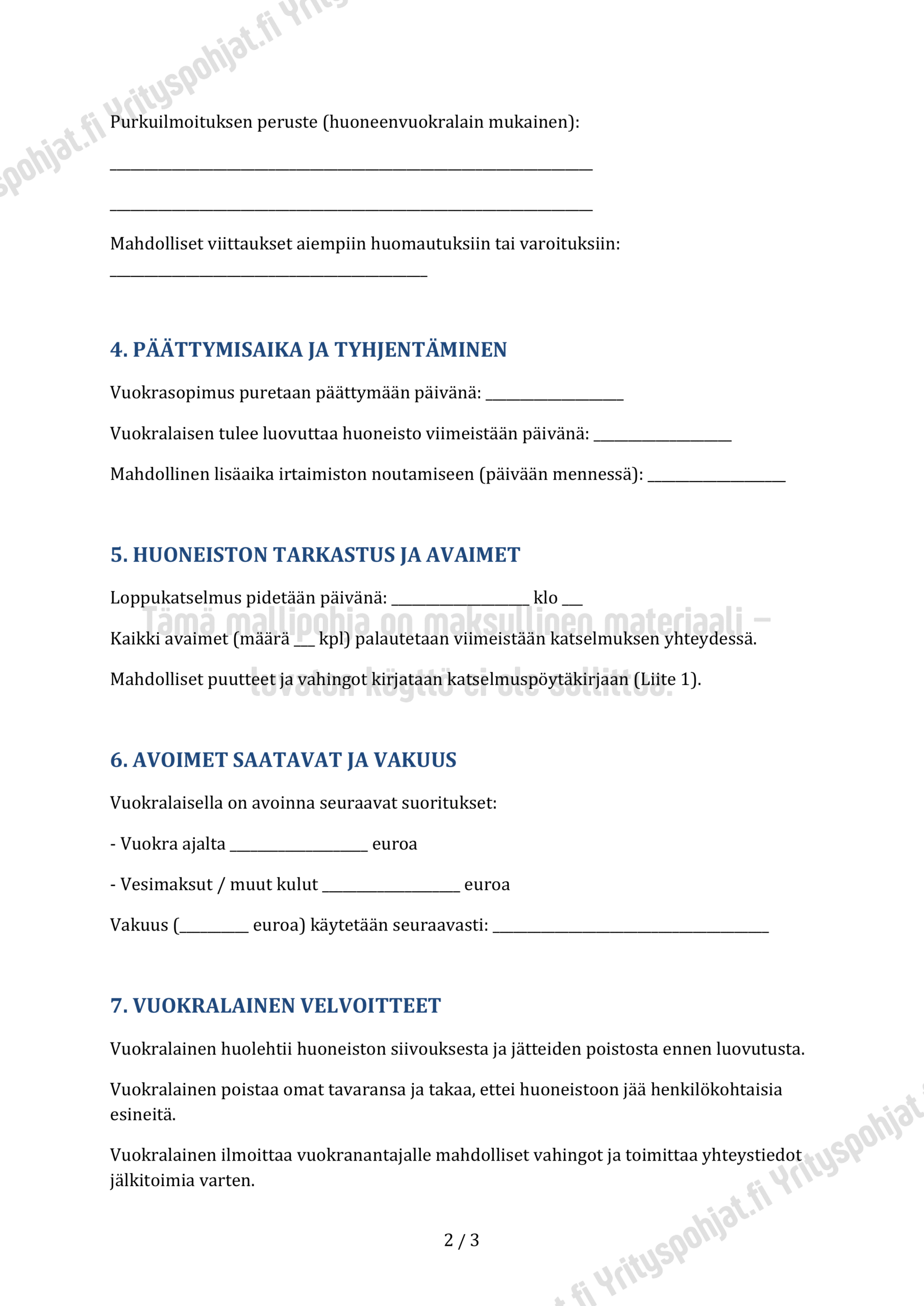 Pohja soveltuu sekä asuin- että toimitilavuokrauksen purkutilanteisiin.